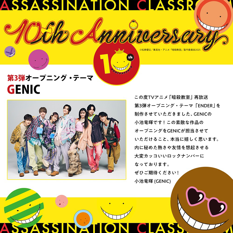 @AvexMusic🎧New Release🎧 / 2025.10.2 リリース💿 GENIC『#ENDER』 \ TVアニメ「#暗殺教室」再放送 第3弾オープニング・テーマとなる「ENDER」をリリース✨🎓 メンバーの小池竜暉が作詞・作曲、雨宮翔が作詞を手がけた、 内に秘めた熱さや友情を想起させるロックナンバー🎶 #GENIC