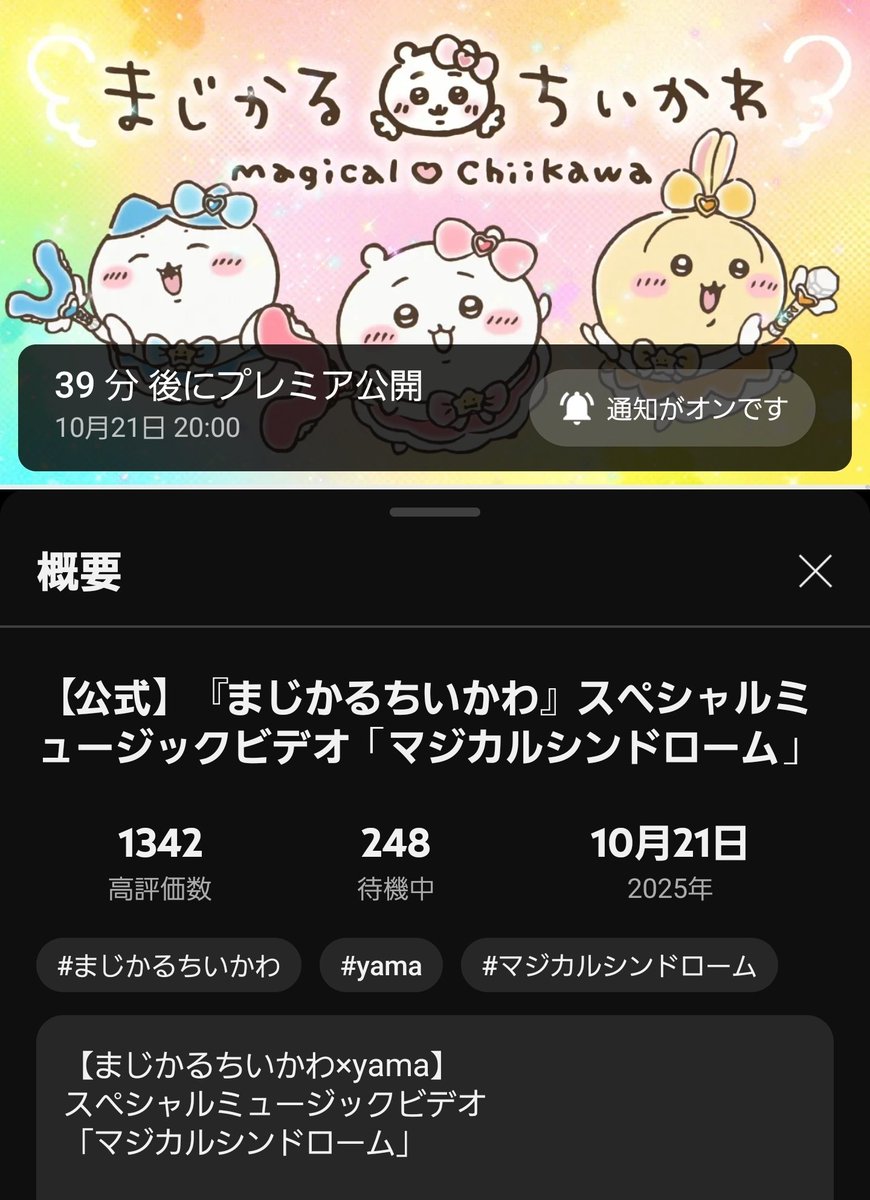 @jyumianperi返信先:@chiikawa_kouhou まじかるちいかわ×yama スペシャルミュージックビデオ マジカルシンドローム公開ありがとう
