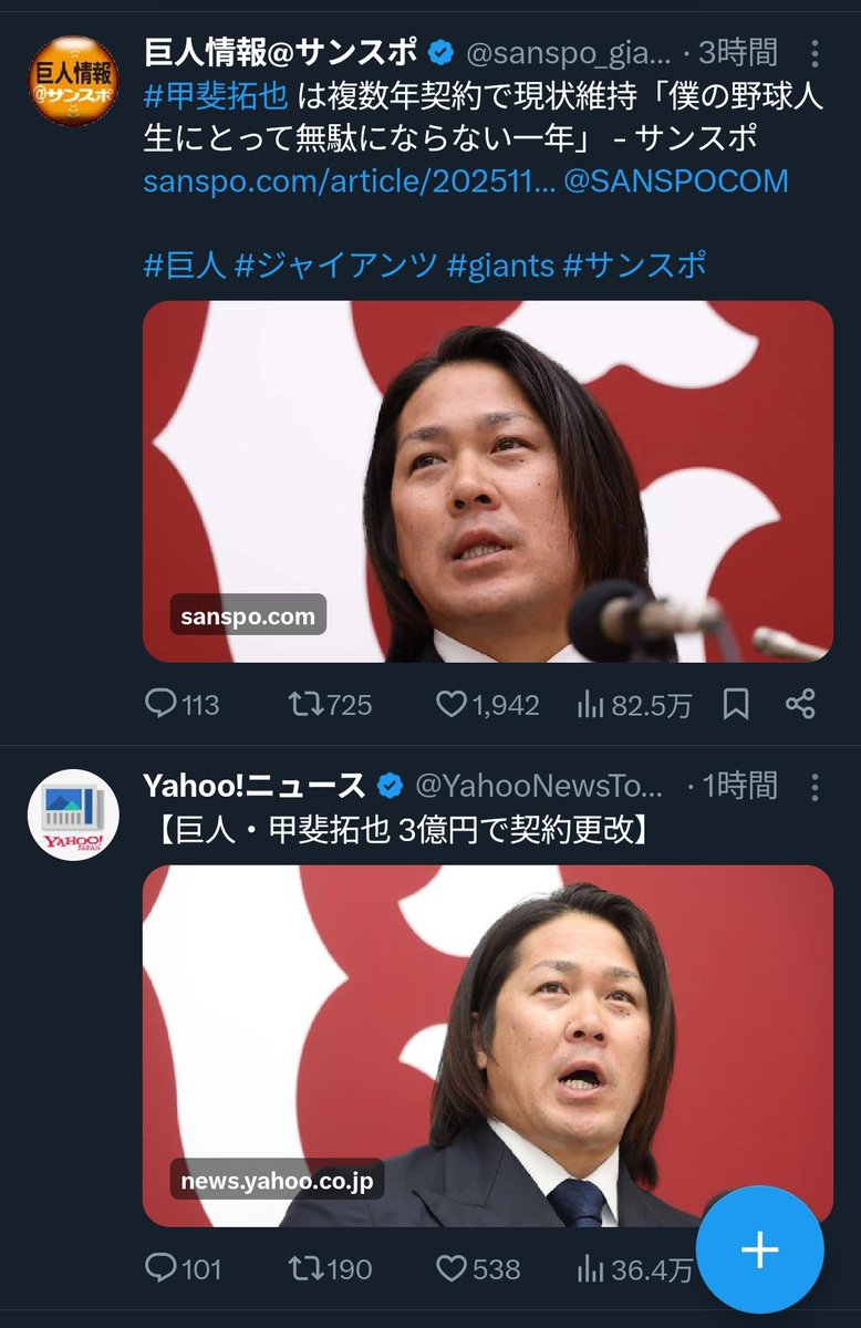 @32_52ichi《また巨人はキャッチャーが育たない》 巨人・甲斐拓也 3億円で契約更改 2025年11月27日 news.yahoo.co.jp/pickup/6560392